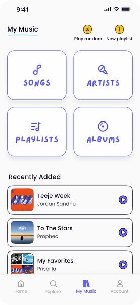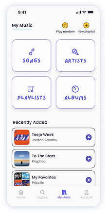 Keeping in mind that this is a MVP product that kids will mainly navigate, I opted to keep the app narrowed down to the most relevant content. I felt this was a great approach because kids' attention spans are short making their main focus discovering and listening to their music.