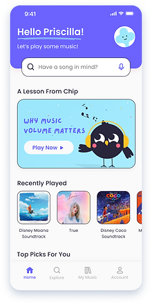 Provided a refinable education feature (Chip) to teach and prepare kids on various music topics